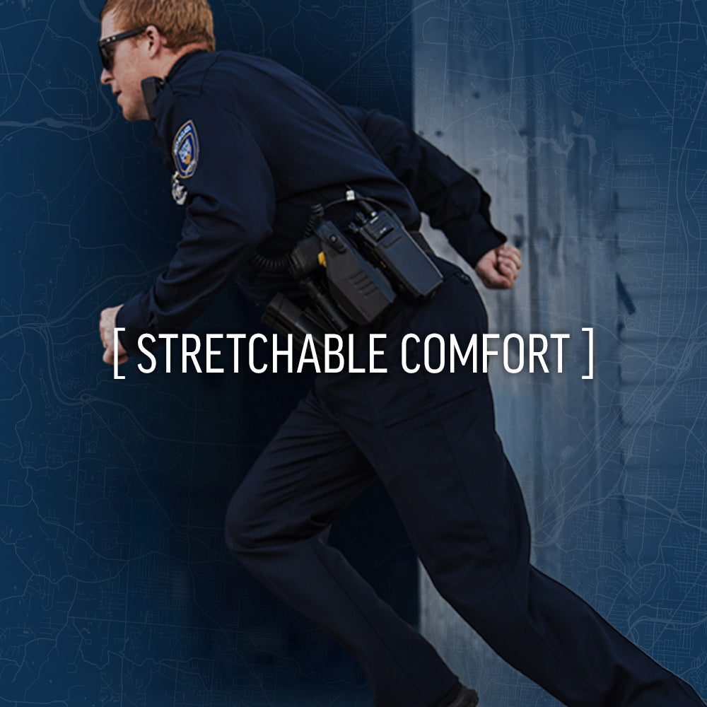 The tradition of excellence you trust for a crisp, polished look — with the flex fabric technology you’d expect from the leaders in performance stretch uniforms. Prime Flex stretches the limits once again with a meticulous evolution of our premium Justice poly/wool uniform, delivering a new Signature Fit, ExactComfort waistband and more durability and comfort than ever before. Tested for long wear with minimal care to hold its shape and color and resist odors to stretch for the long run.